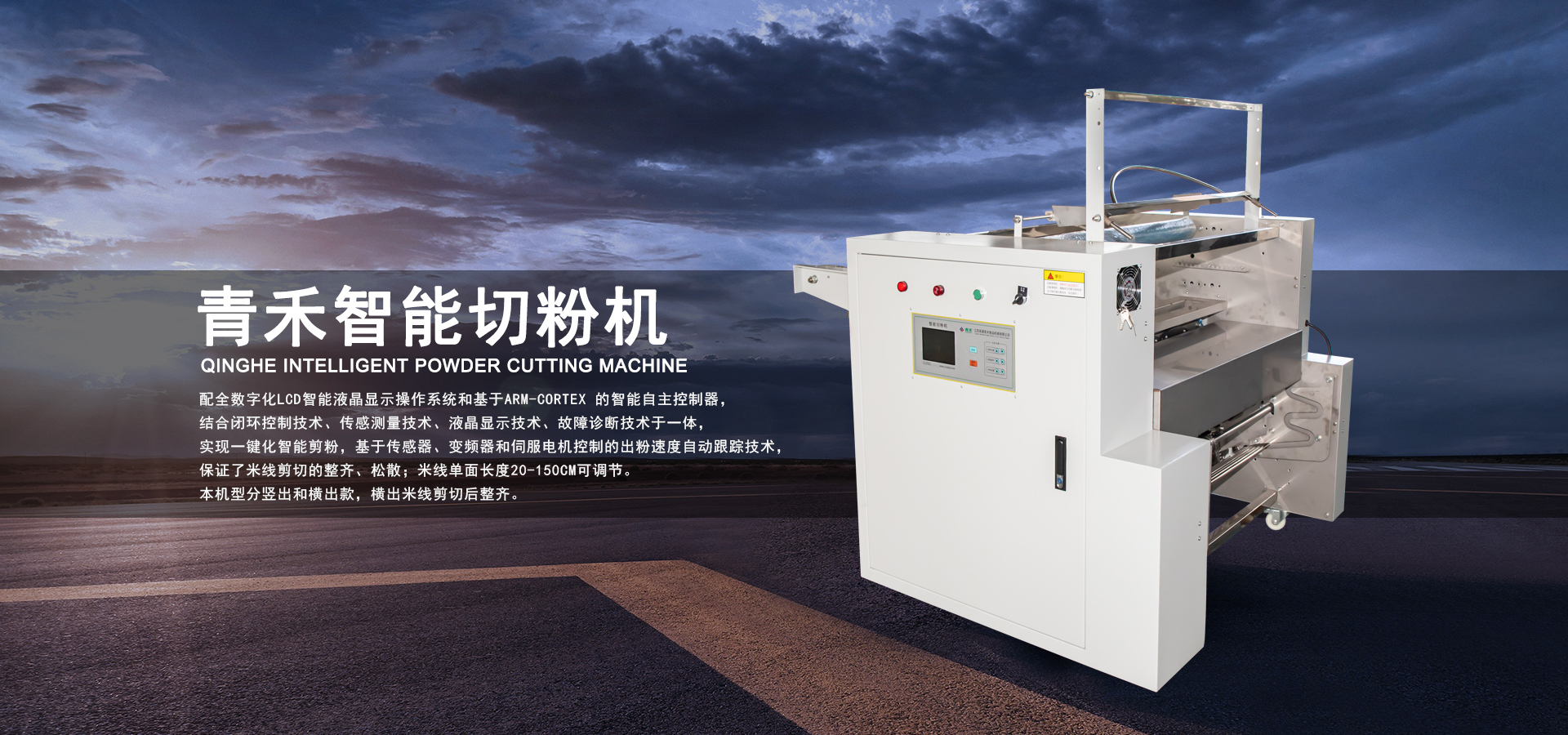 配全数字化LCD智能液晶显示操作系统和基于ARM-Cortex 的智能自主控制器,结合闭环控制技术、传感测量技术、液晶显示技术、故障诊断技术于一体,实现一键化智能剪粉,基于传感器、变频器和伺服电机控制的出粉速度自动跟踪技术,保证了米线剪切的整齐、松散;米线单面长度20-150cm可调节。本机型分竖出和横出款,横出米线剪切后更整齐。